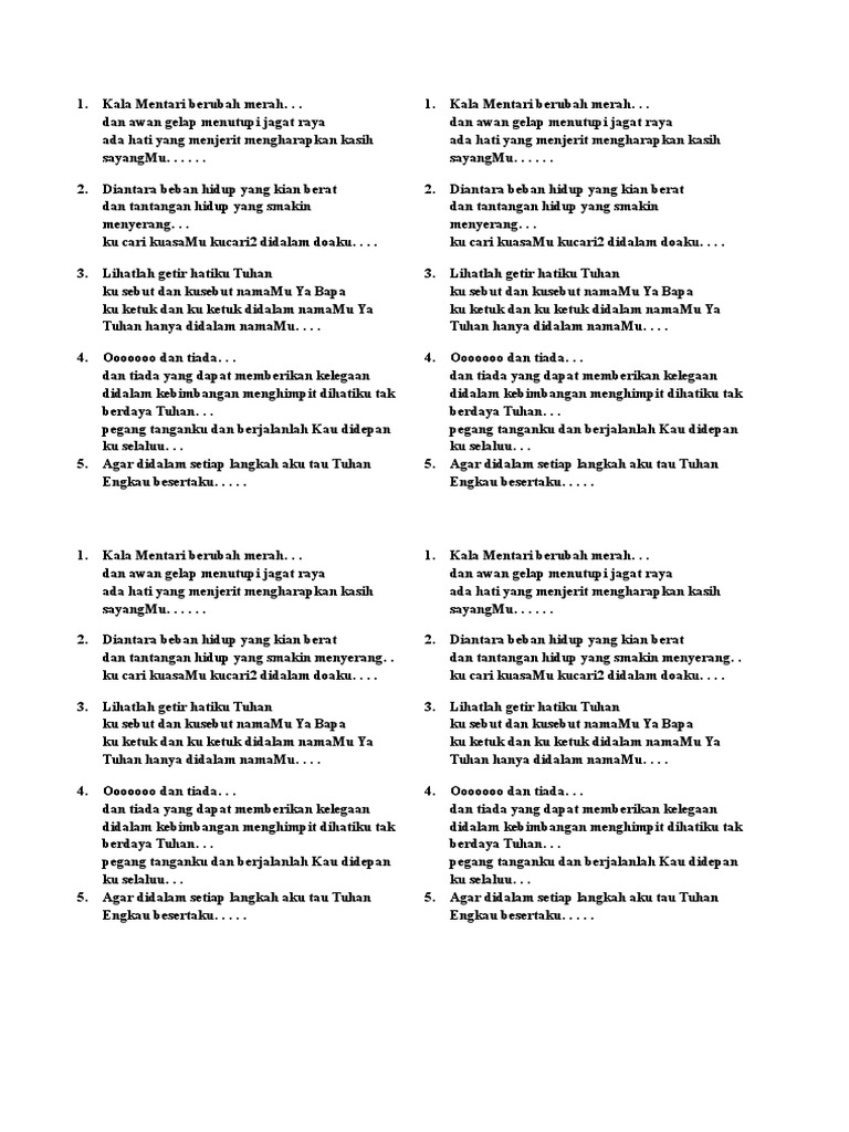Lirik Lagu Bulan Madu dari Amy Search lagu ini adalah salah satu lagu yang dipopulerkan oleh Amy Search silahkan selengkapnya baca disini. Jasad terbujur di pembaringan 2x seluruh tubuh akan menggigil. Lirik Lagu Iwan Fals - Kebaya Merah Kebaya merah kau kenakan Anggun walau nampak kusam Kerudung putih terurai Ujung yang koyak tak kurangi cintaku Wajahmu seperti.
